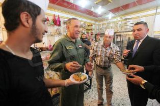 والتقى الوزير بعدد من أهالي المدينة وتناول مع بعضهم الحلوى، وبرفقته محافظ صلاح الدين رائد الجبوري وعدد من القادة العسكريين.