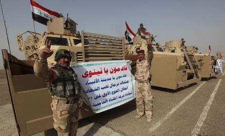 “قادمون يا نينوى”، شعار تقدم آليات عسكرية غادرت بغداد تقل مقاتلين كلفوا بمهمة انتظر العراقيون تنفيذها بفارغ الصبر. المقاتلون الذين عكفوا طيلة الفترة الماضية على تلقي تدريبات على يد مستشارين أميركيين، بدا عليهم إصرار كبير عبروا عنه من خلال رفع العلم العراقي بألوانه الأربعة وإشارات النصر.